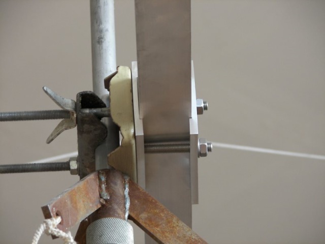 Zur Befestigung des 40mm Booms an verschiedenen Masten, habe ich mir zwei Aufnahmen aus Alu gefräst. Diese werden Edelstahlgewindestangen an einer Standardmastschelle befestigt. |